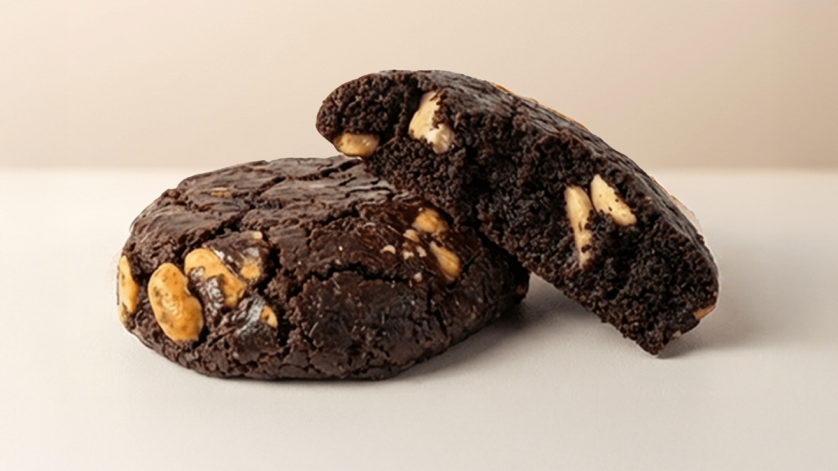 შოკოლადის ბისკვიტი, არაქისის და კარამელის შიგთავსით.