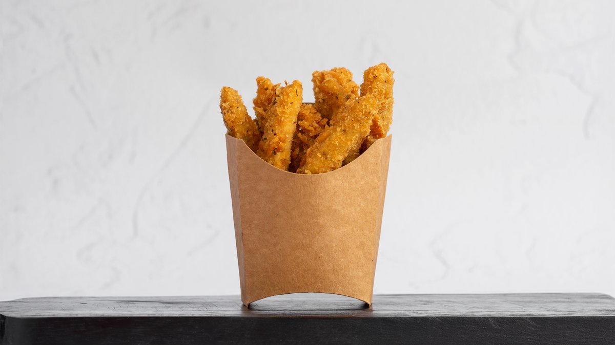 Portion of fish sticks breaded with panko, served with tartar sauce