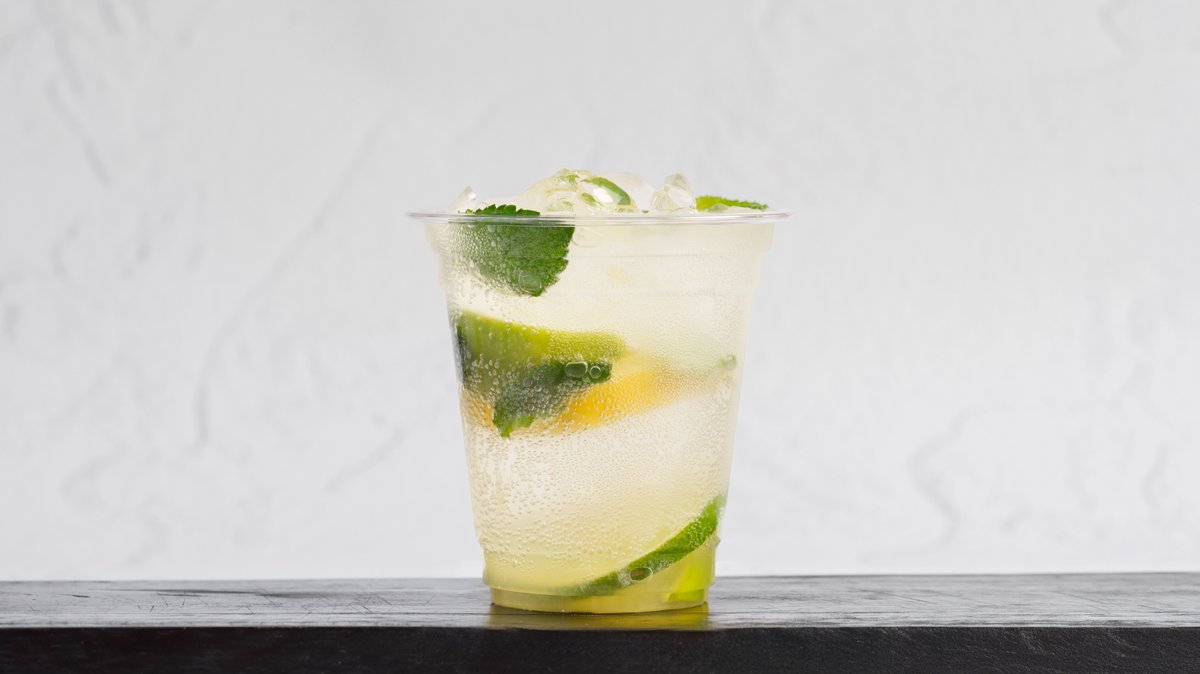 lemon juice, homemade sugar syrup, sparkling water & ice.