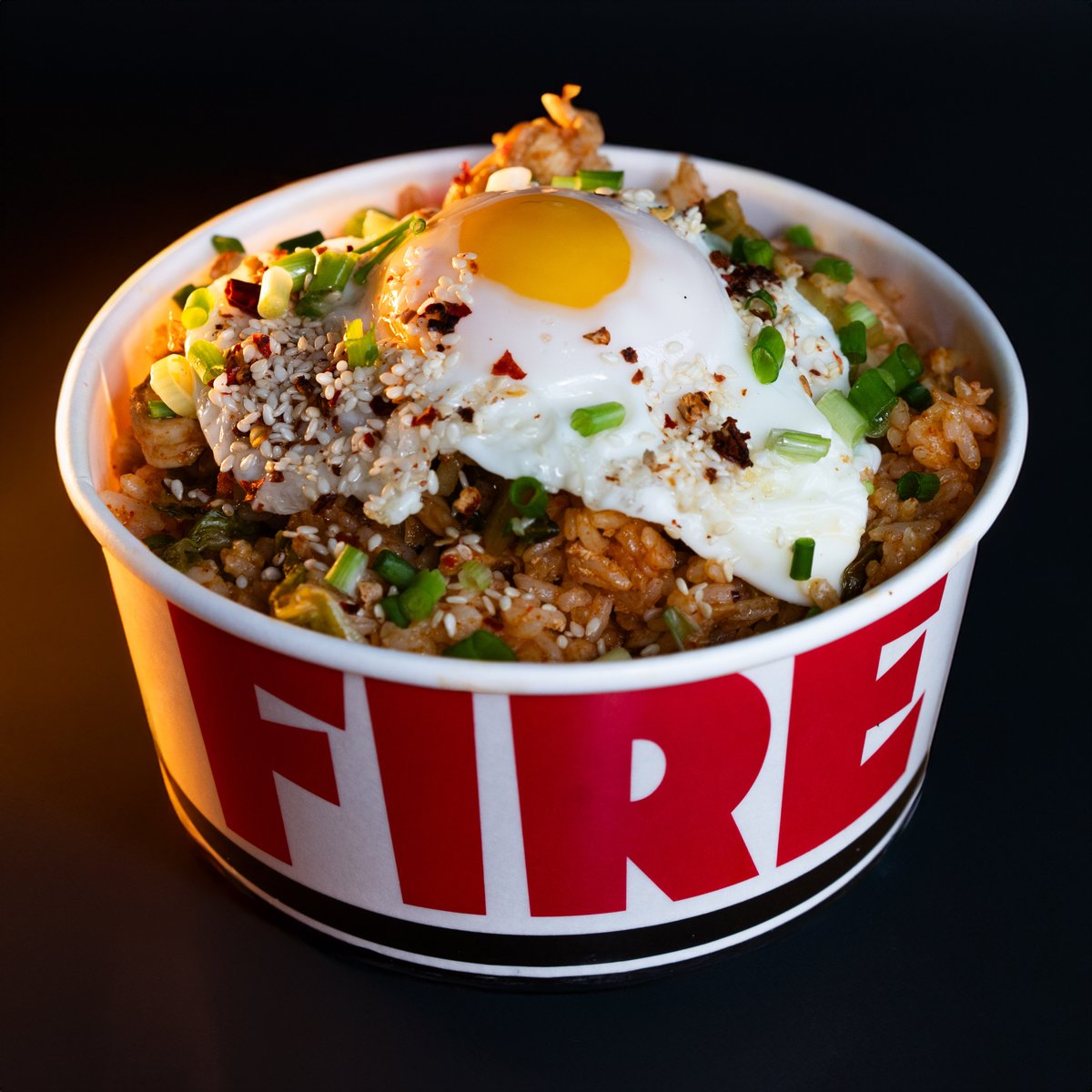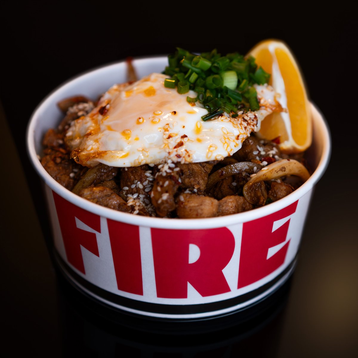 Steamed White Rice Topped with Stir-fried Chicken Tenders and Onions, in Our Special Sauce. Garnished with Well-done Fried Egg, Sesame Seeds, Chili Flakes and Spring Onions. Drizzled with Sesame Oil and House Chili Oil for a Bit of Spicy Kick