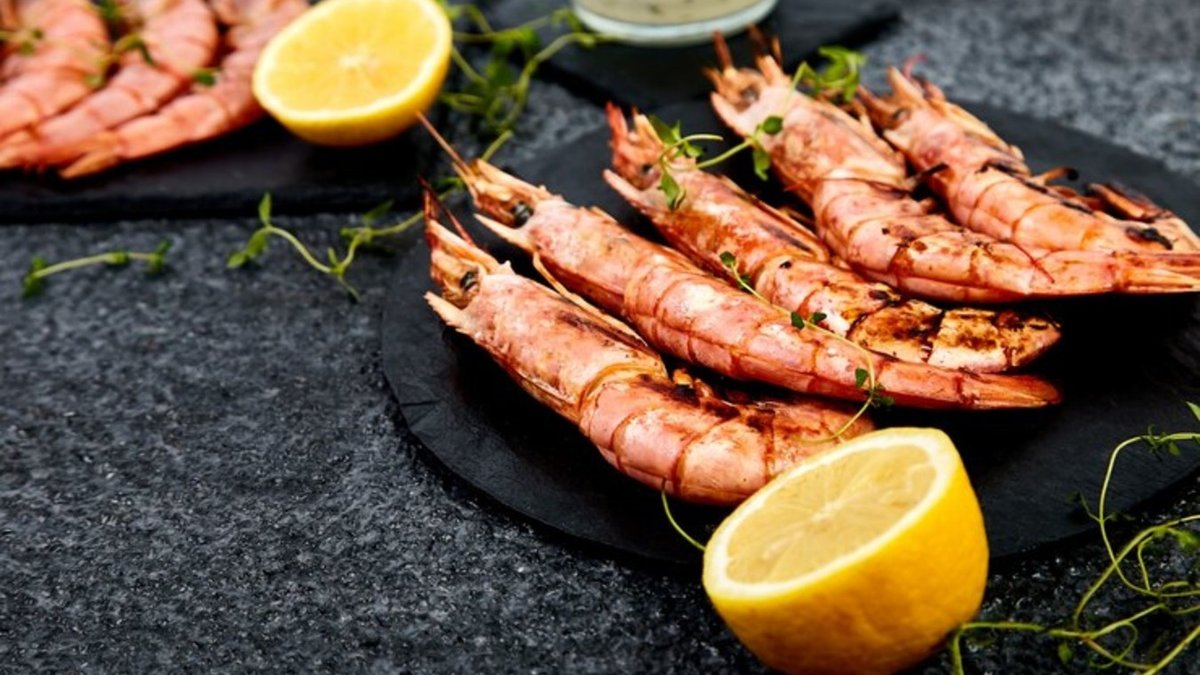 Grilled whole tiger shrimp