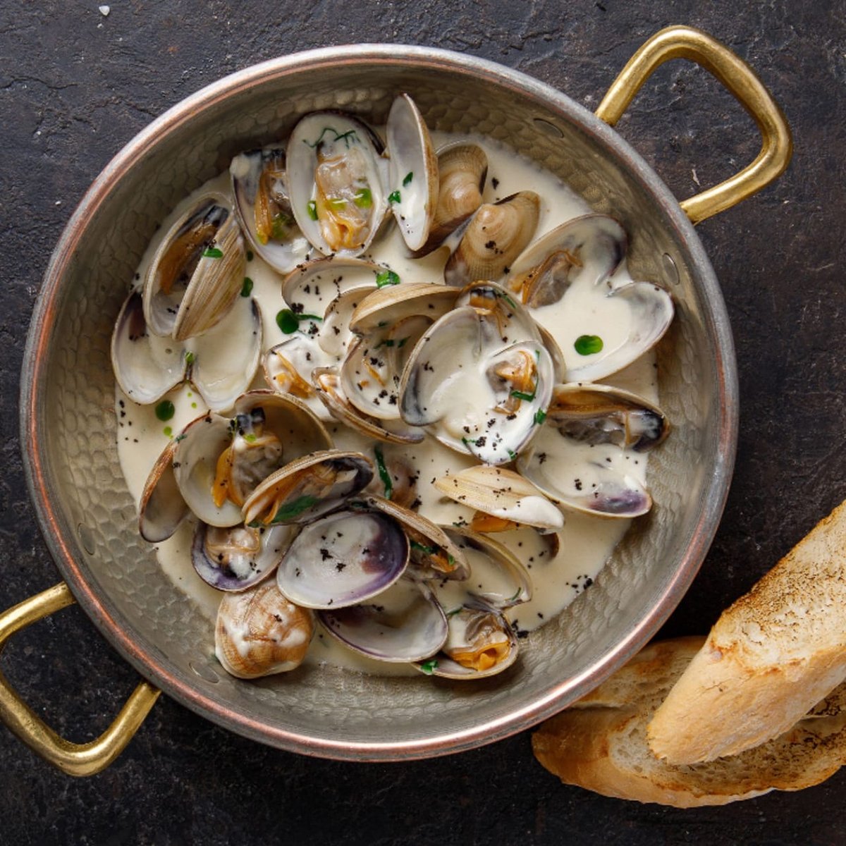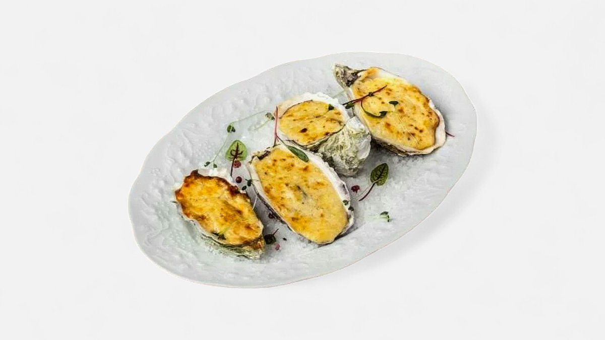 Premium Super Spéciales oysters — juicy, firm, and full of ocean flavor. Baked with fragrant cheese, garlic, and a creamy sauce for a rich and indulgent seafood experience.