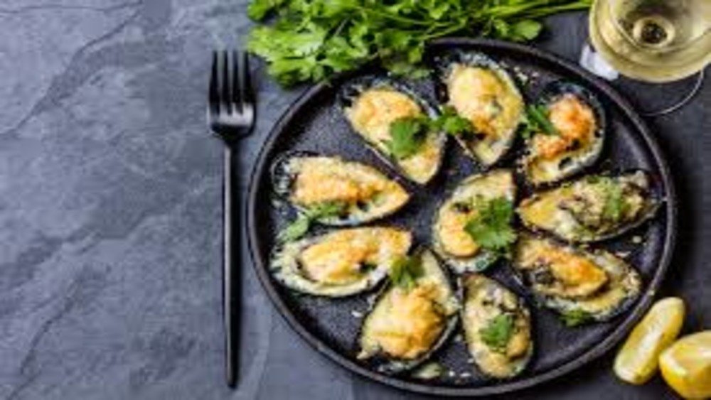 Half-shell kiwi mussels baked with cheese and garlic, 2 pcs