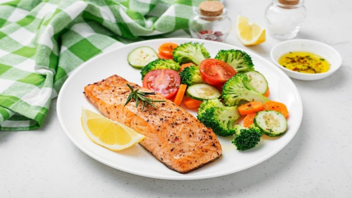 Grilled salmon steak