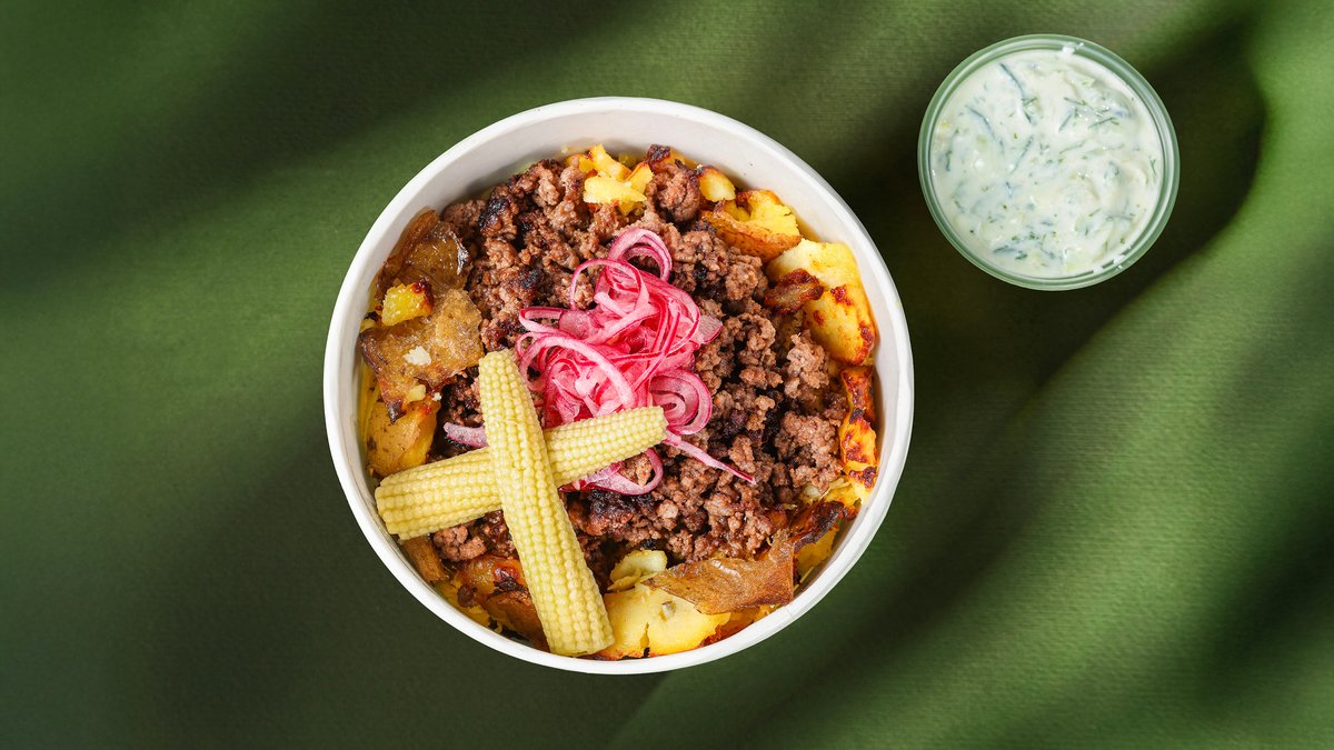 გამომცხვარი კარტოფილი საქონლის ფარშით