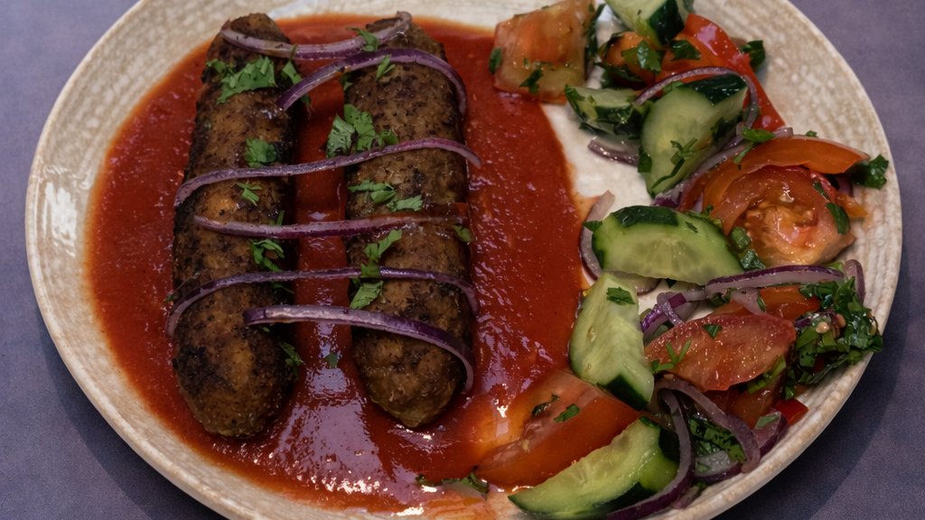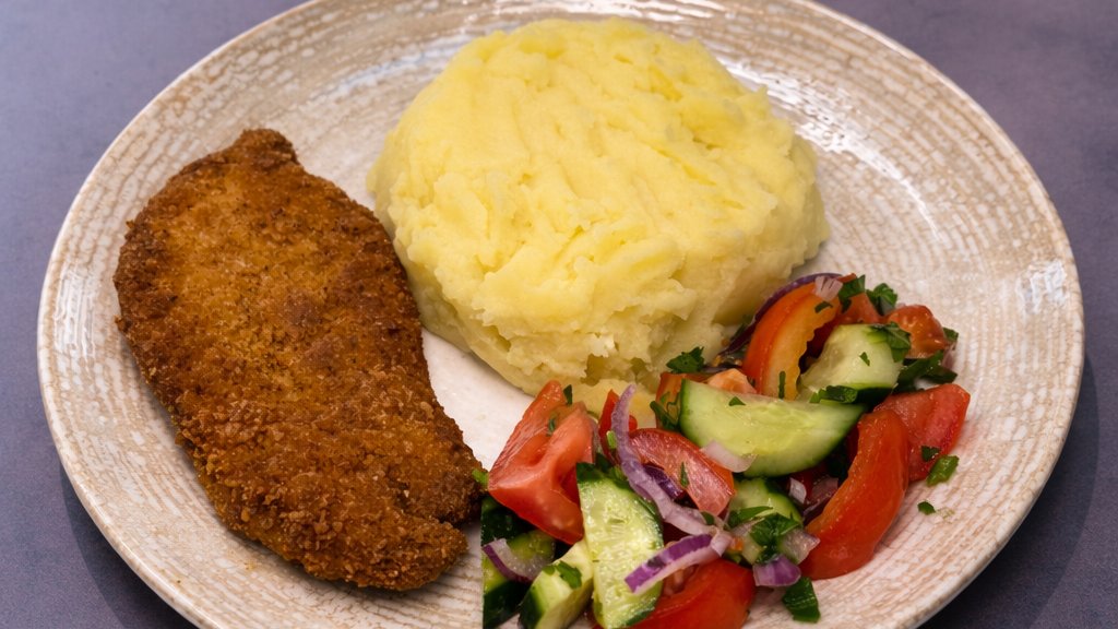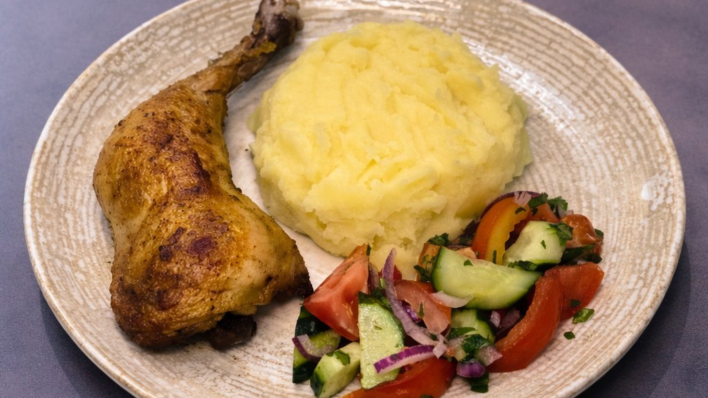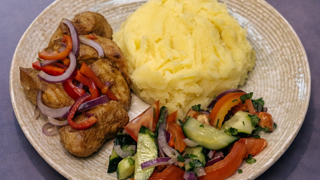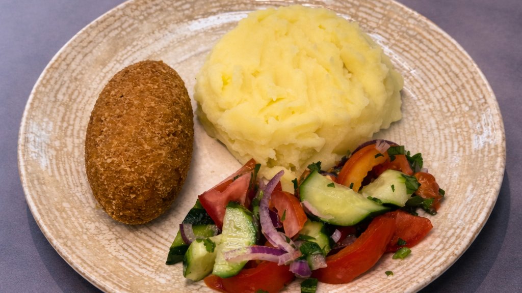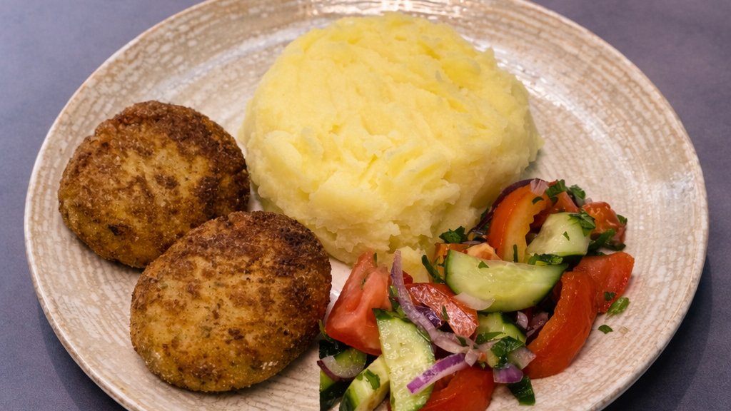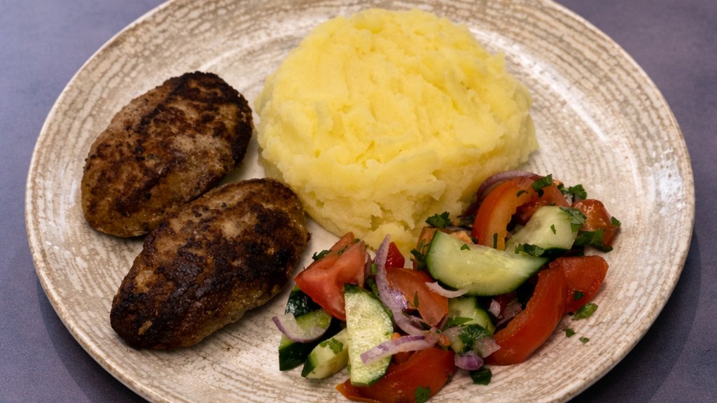 კატლეტი 2 ცალი , პიურე 250გრ , სალათა 200გრ