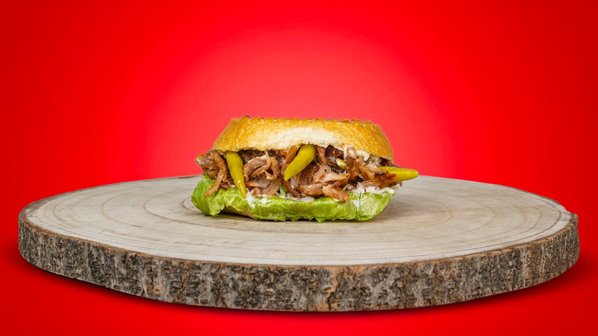 სარდელი, ღორის ხორცი, მაიონეზი, კეტჩუპი, სალათის ფურცელი, ხახვი, წიწაკა