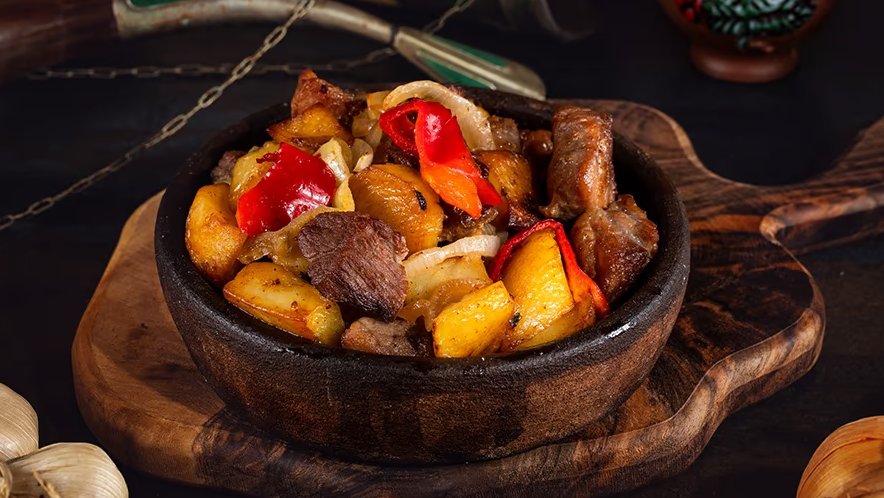 ღორის ხორცი,კართოფილი,სვანური მარილი-500 გრ
