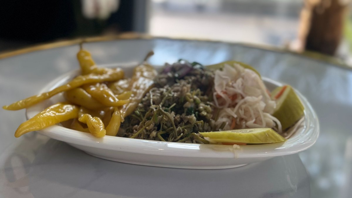ღომი ჩახარშული სულგუნითა და შებოლილი სულგუნით