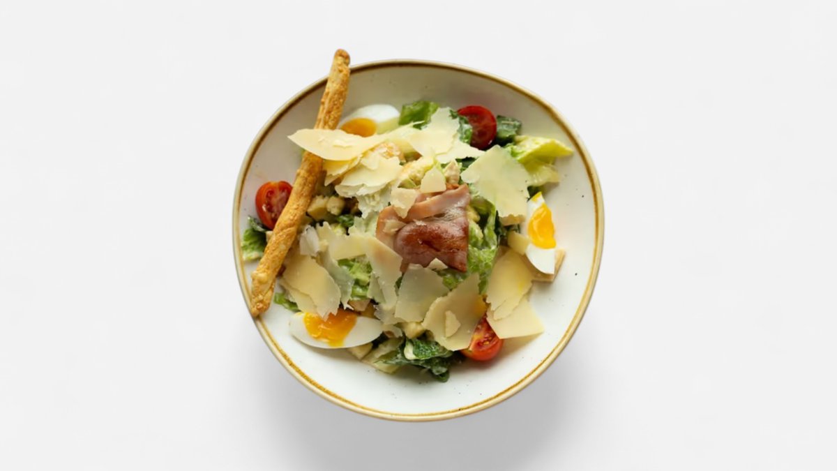ქათმის ფილე გრილზე, კვერცხი, რომანო სალათი, ბეკონი