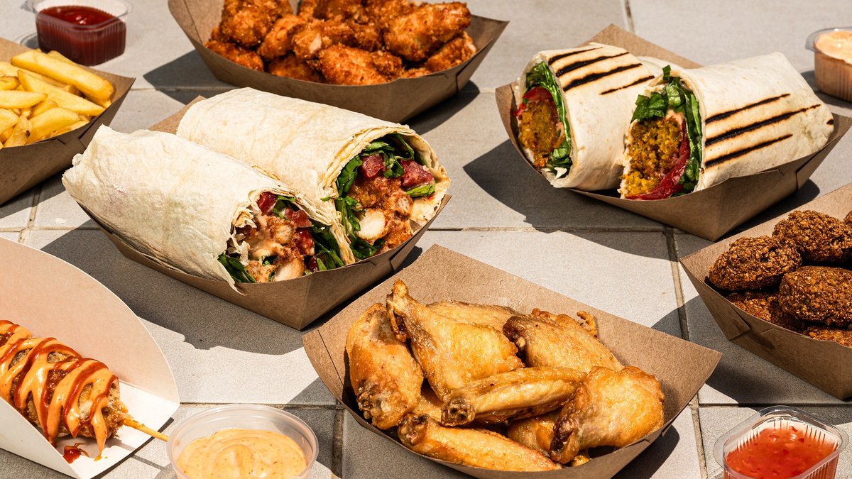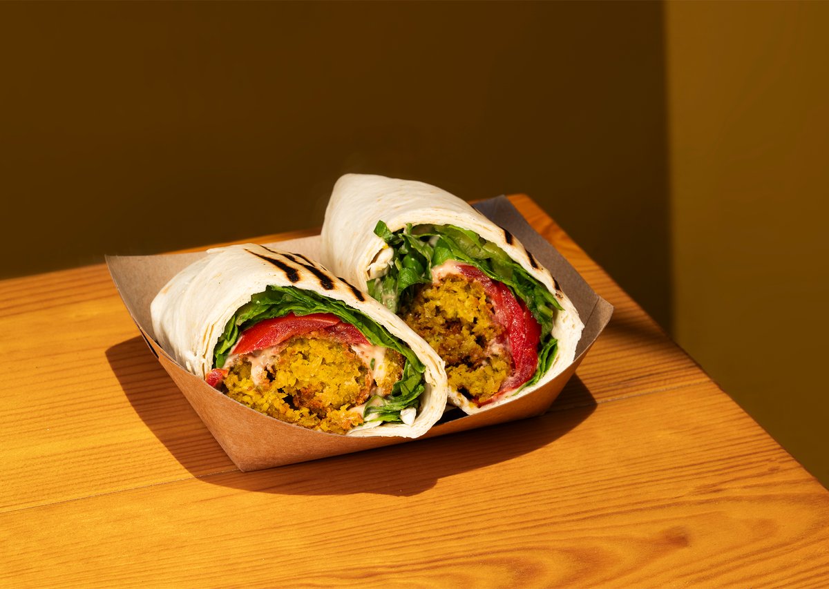 ტორტილია,ფალფელი, პომიდორი, სალათის ფურცელი, სპეციალური სოუსი