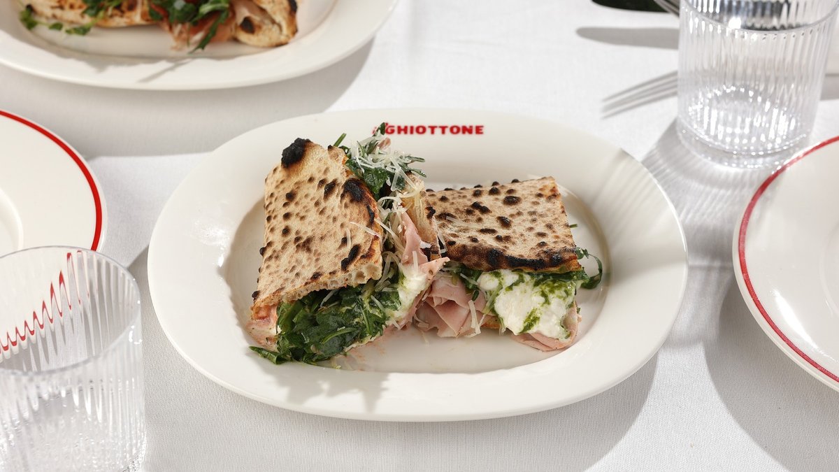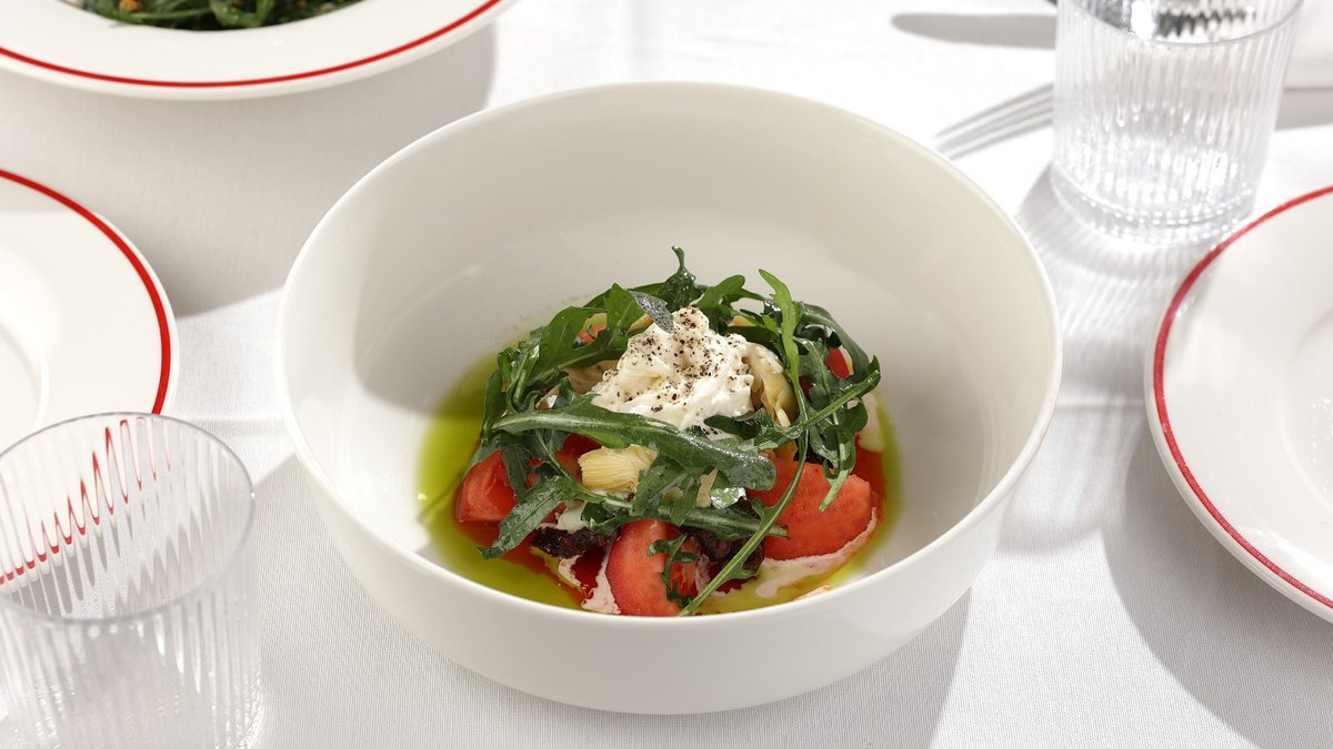 ტომატის სოუსი, მორტადელა, სტრაჩატელა, რუკოლა