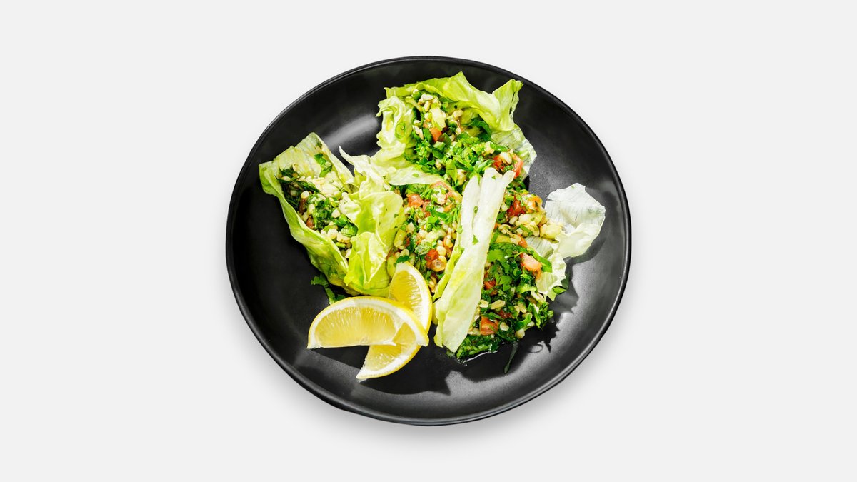 ბულგურით, მწვანილების მიქსით, პიტნით, პომიდვრით, კიტრითა და ლიმონით