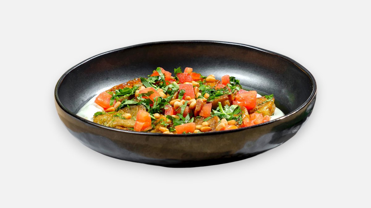 ავოკადო, ჩერი პომიდვრის კონფიტი, თხილი და მწვანილი