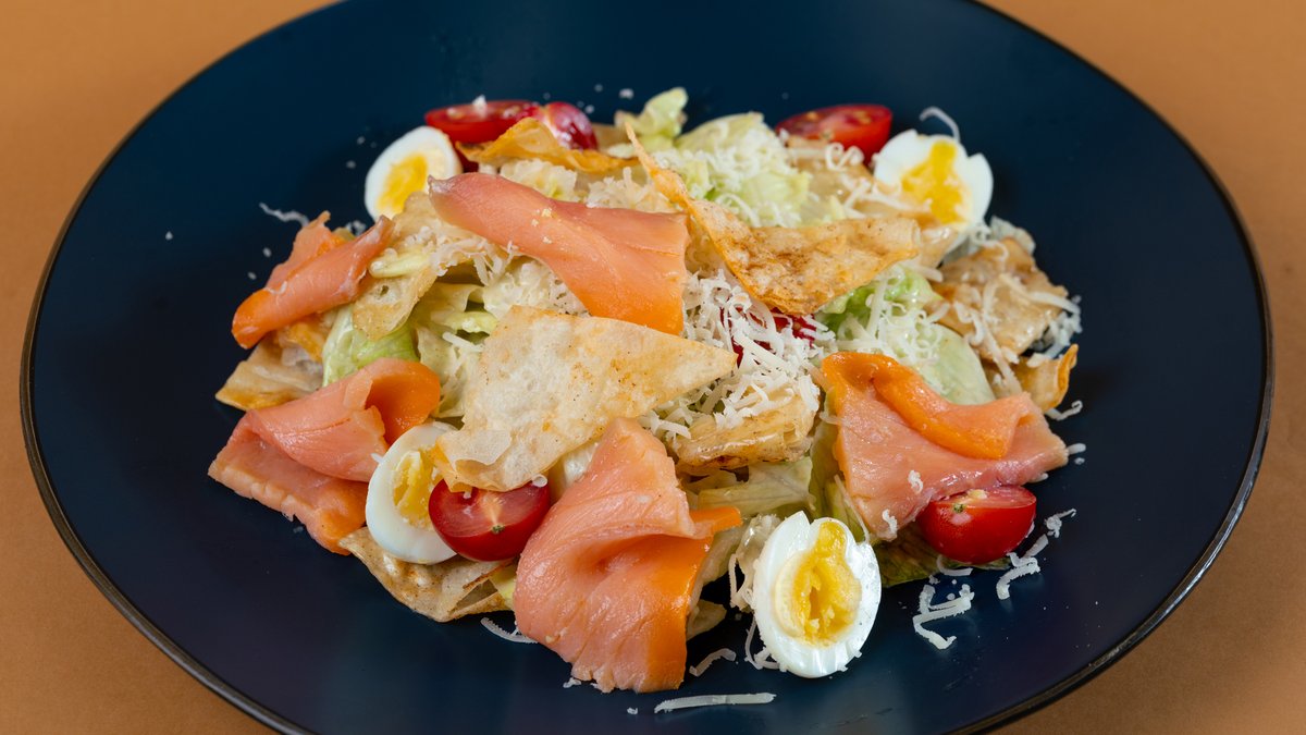 Салат Цезарь с лососем
