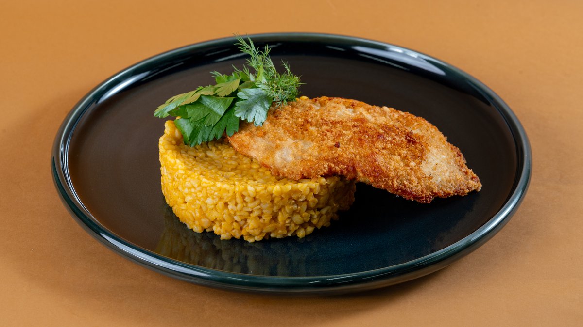 Куриный шницель с булгуром и тыквенным кремом