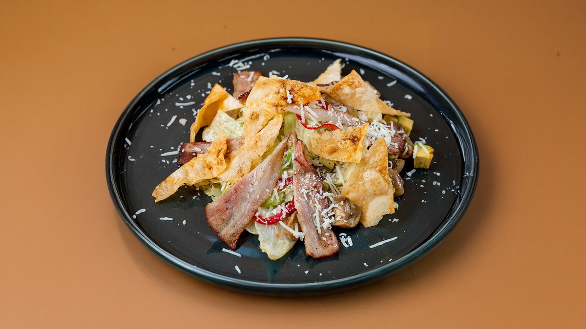 Салат с беконом и жареными грибами