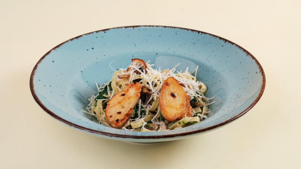 Телиятеле с курицей и грибами