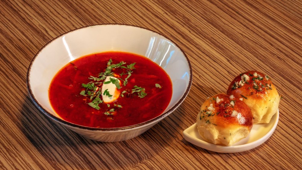 Borscht, pampushki, sour cream
