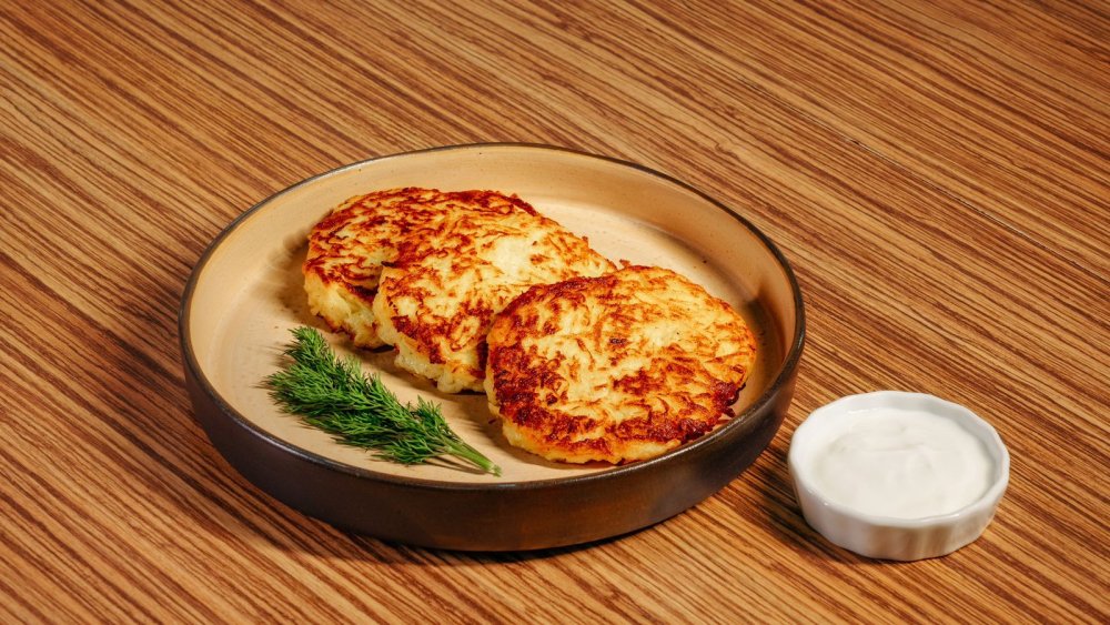 Potato and marrow pancake with sour cream