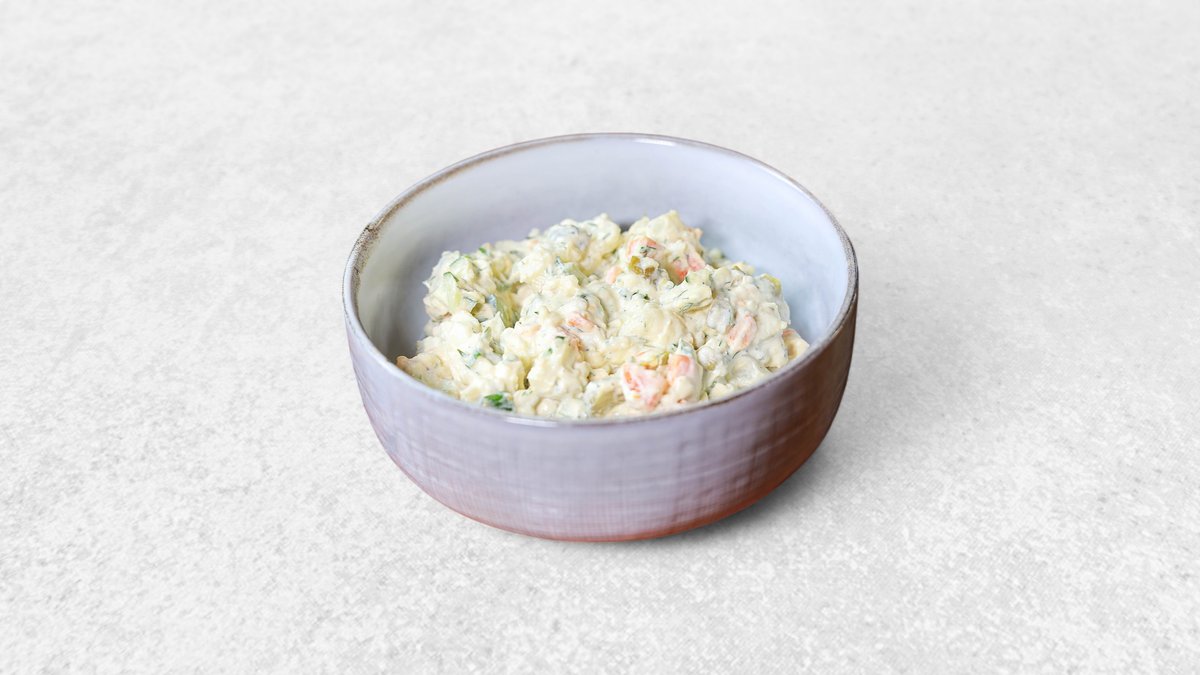 კარტოფილი, სტაფილი, კიტრი, მჟავე კიტრი, კვერცხი, ბარდა, მაიონეზი, ოხრახუში