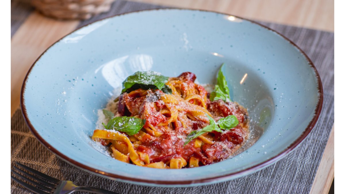 ტალიატელე,ტომატის სოუსი,წითელი ჰალაპენიო,ზეითუნის ზეთი,პარმეზანი