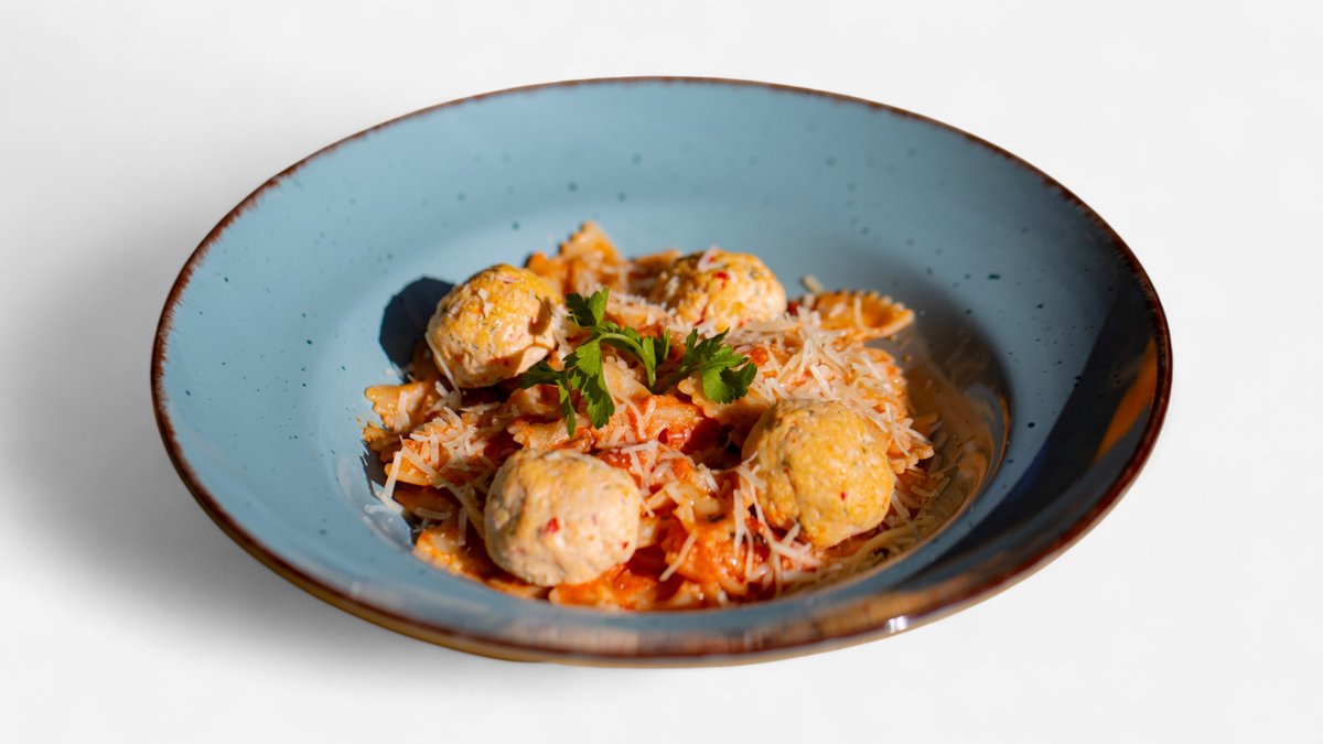 ტალიატელე, ქათმის ბურთულები, ნაღების სოუსი, პარმეზანი