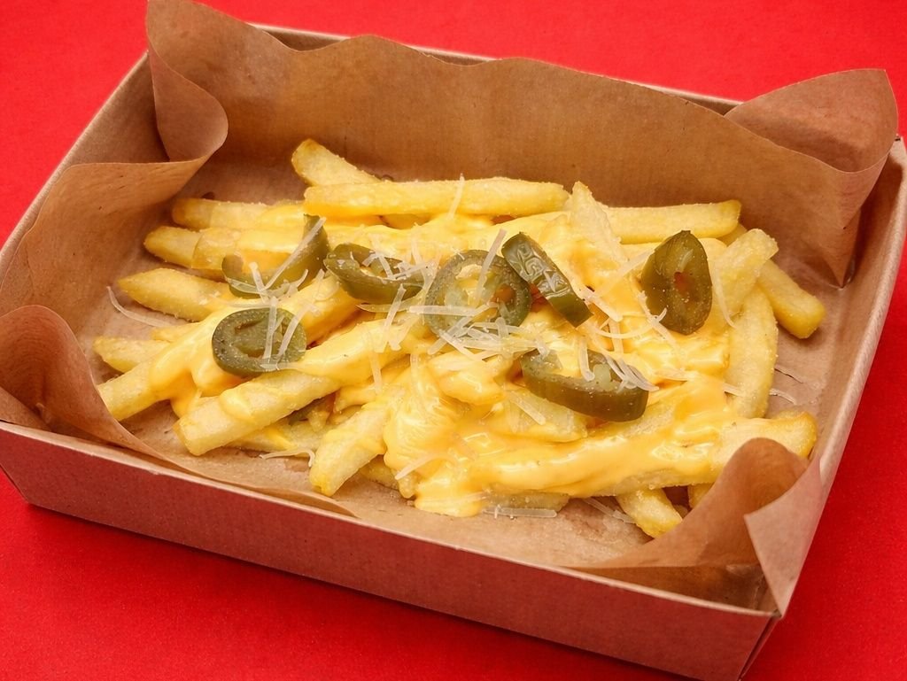 French fries with cheese sauce and jalapenos