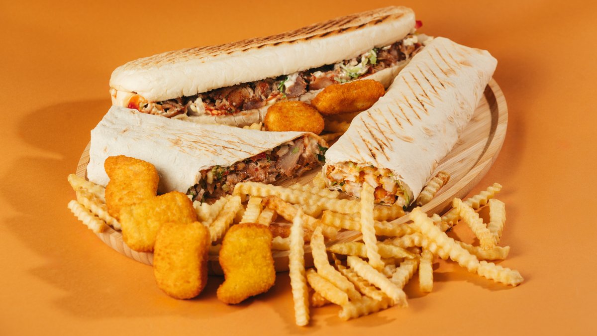 ღორის ხორცი,სალათის ფოთოლი,წიწაკა,ხახვი,პომიდორი,კკეჩუპი, მაიონეზი