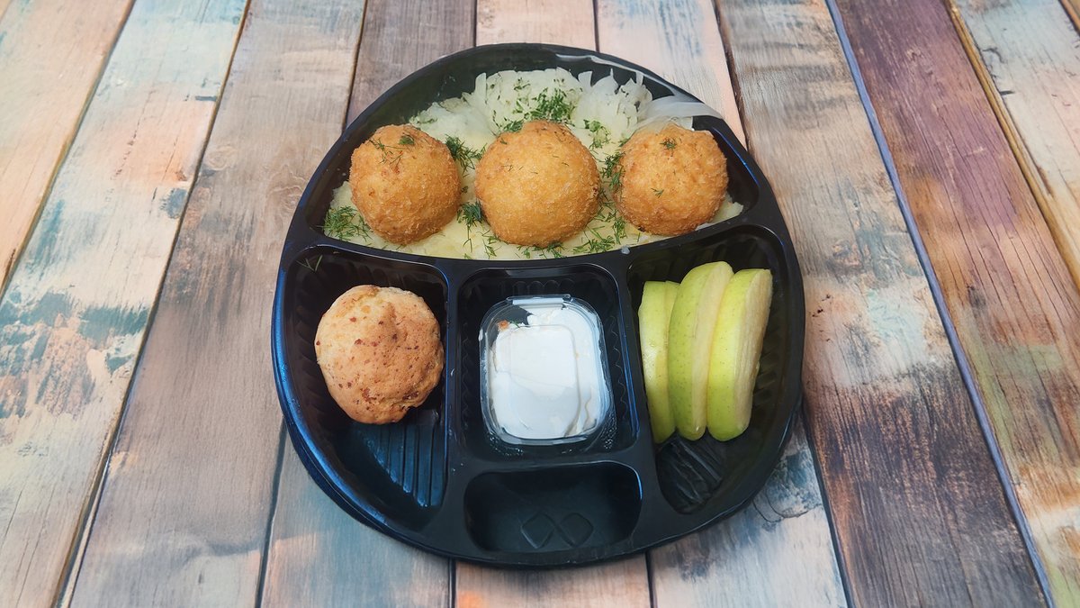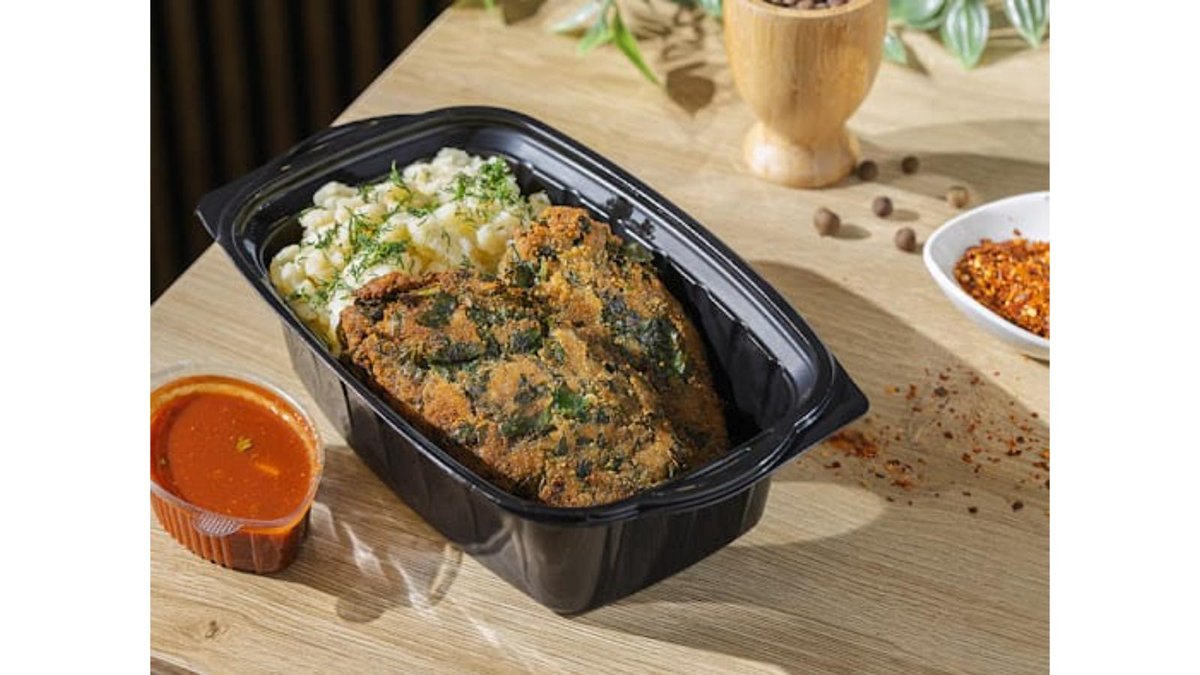 ლანჩი ისპანახის კოტლეტი პიურეს გარნირით (სამარხვო)