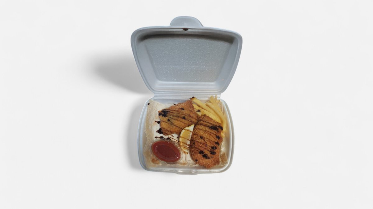 ქათმის ფილე, პანკო, კვერცხი, მექსიკური სოუსი, კეჩუპი, კარტოფილი ფრი