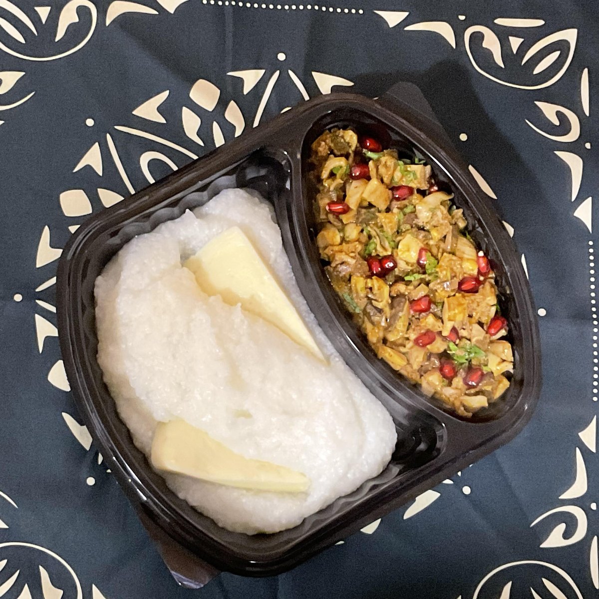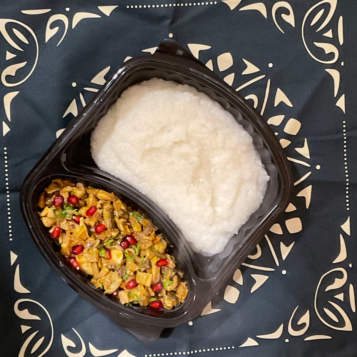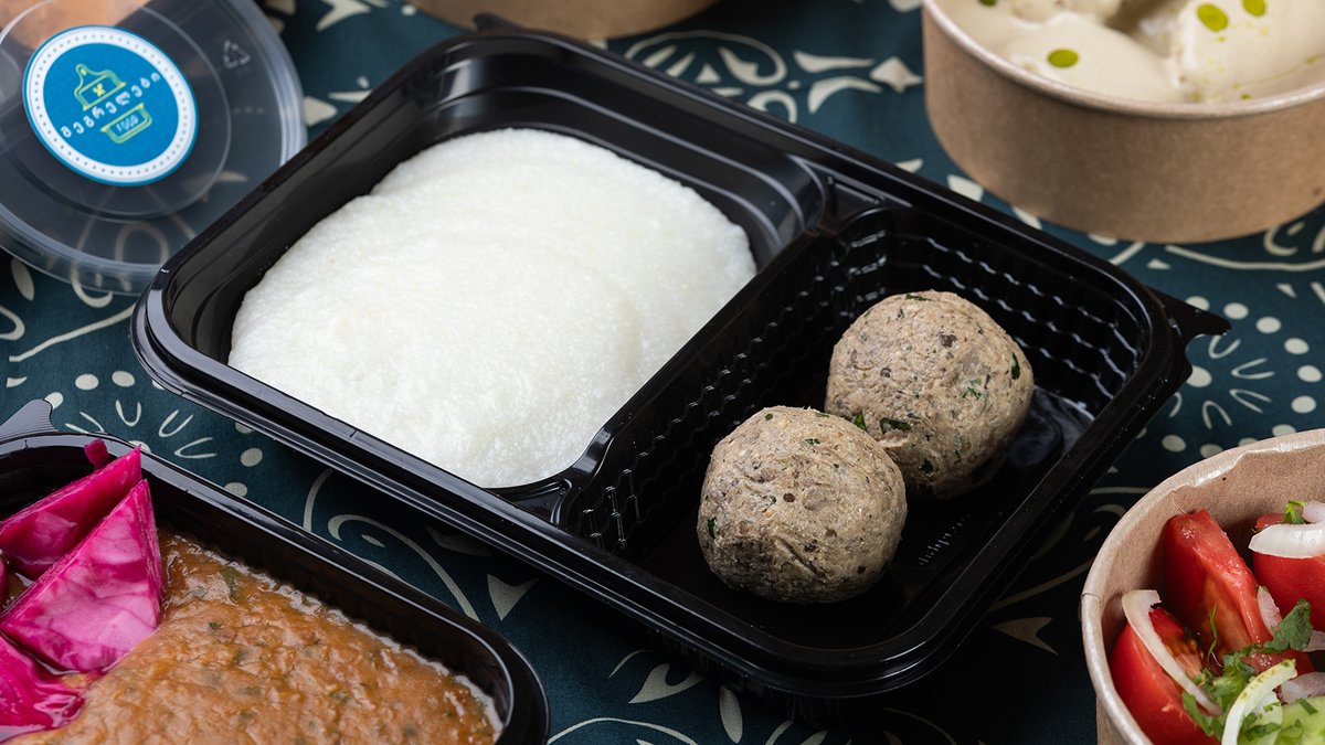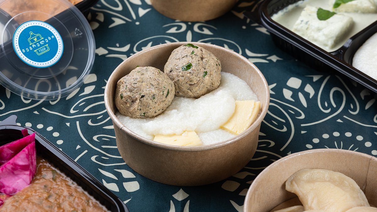 ღომი და ბადრიჯნის ბურთები სულგუნით 500გრ