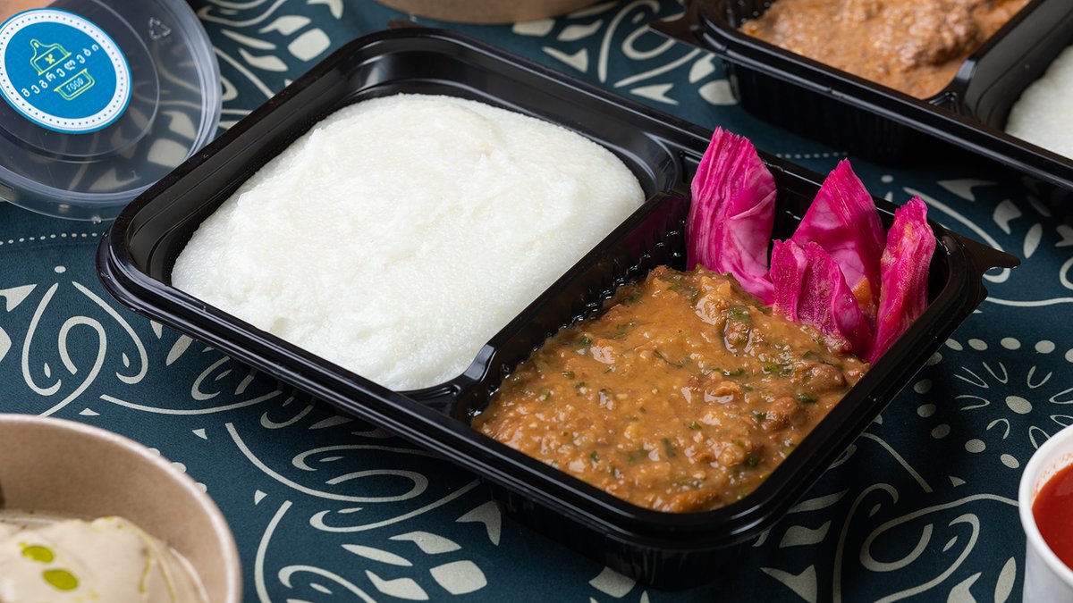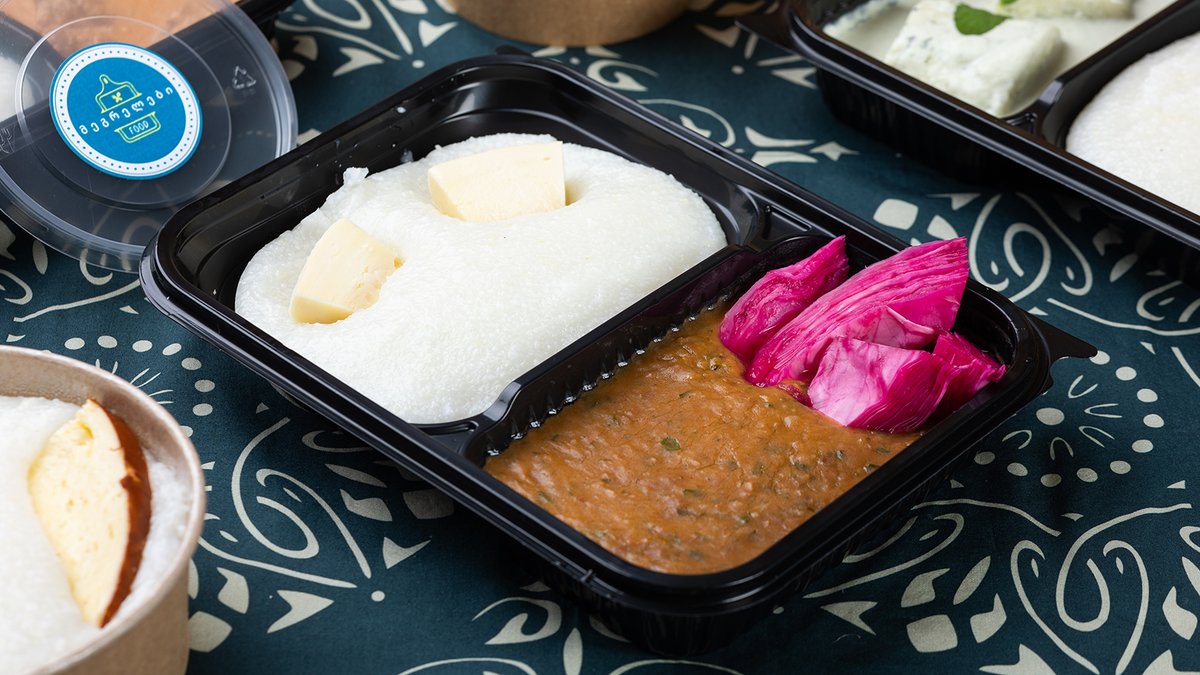 ღომი და ლობიო სულგუნით, კომბოსტოს მწნილი 500გრ