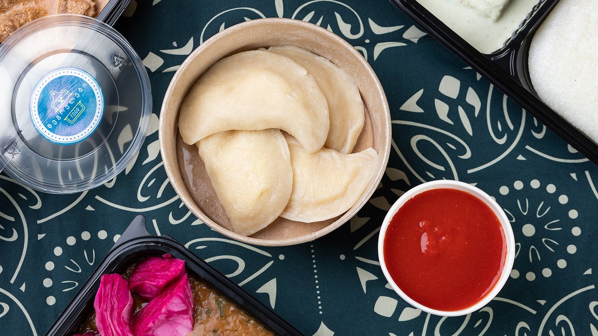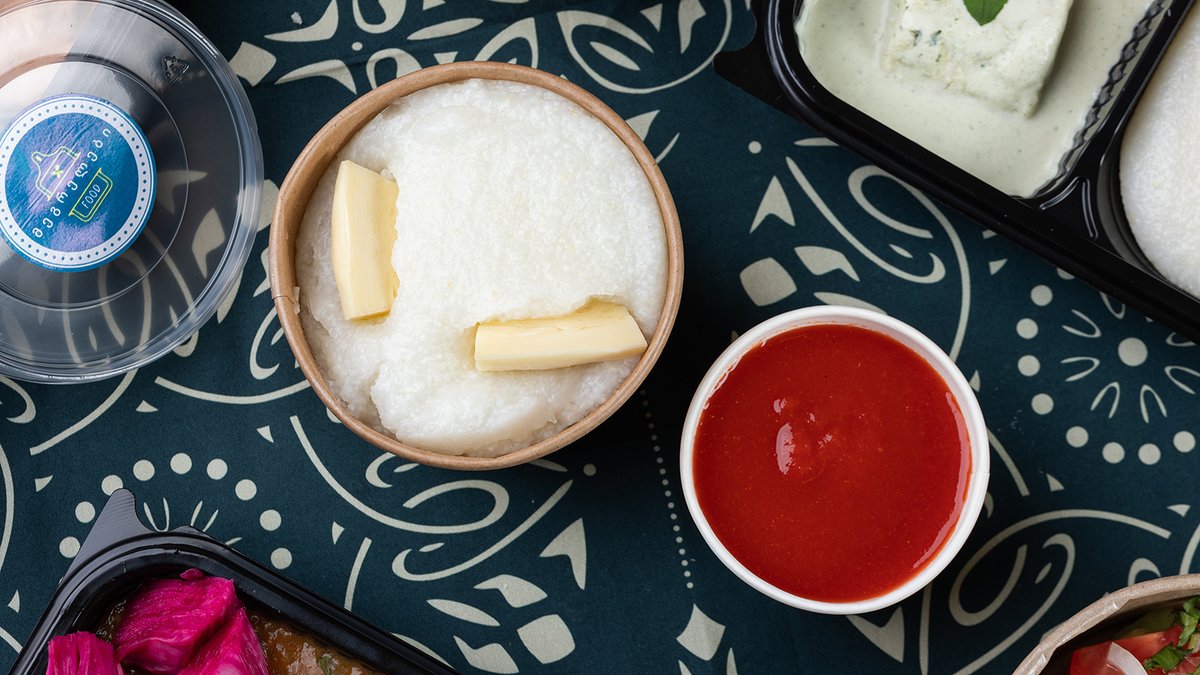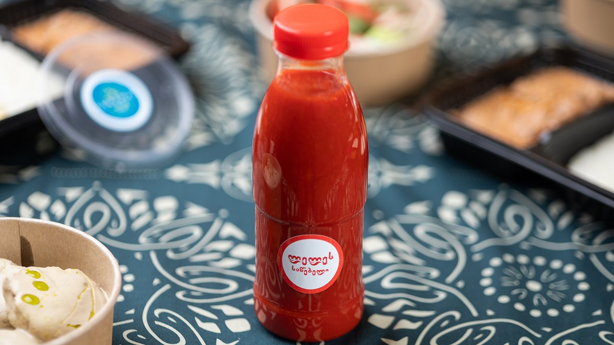 ხორბლის ფქვილი, ყველი სულგუნი, პომიდვრის საწებელი