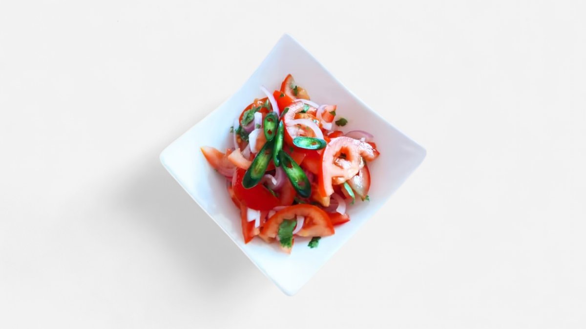 პომიდორი, მწვანე ხახვი, მწვანე ცხარე წიწაკა, მარილი.