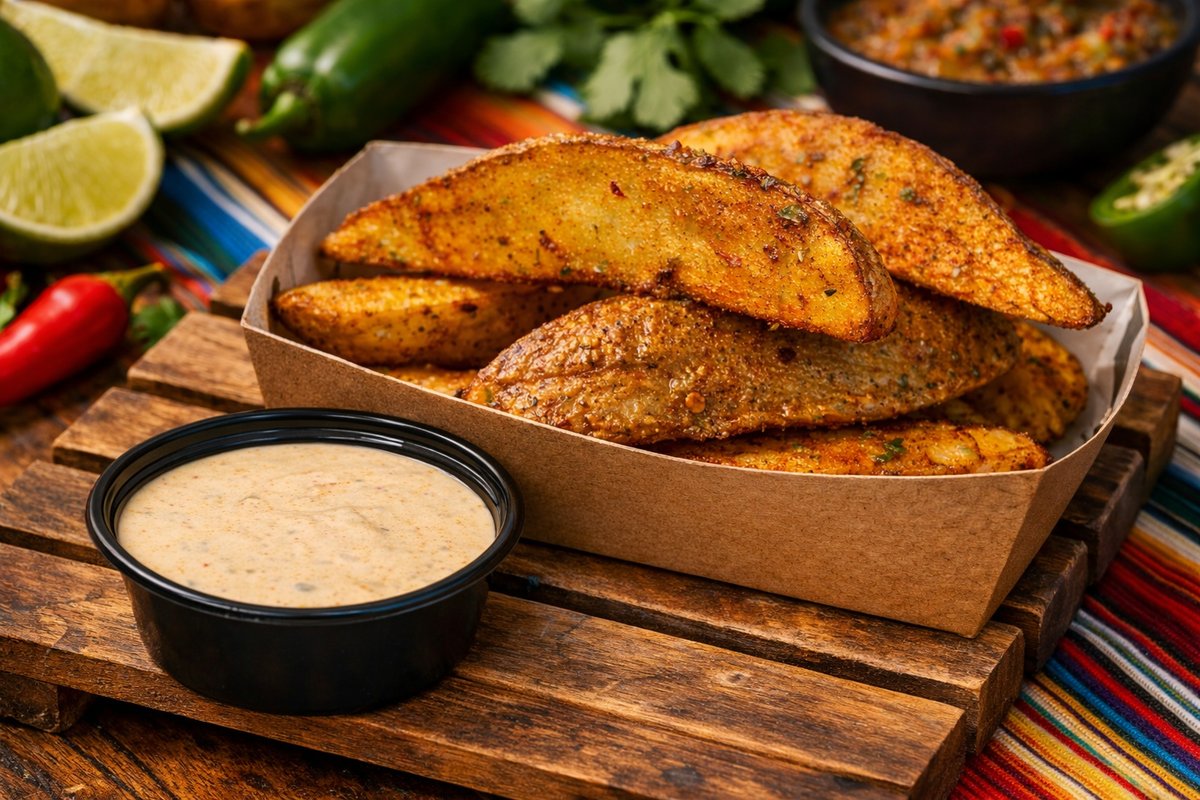 კარტოფილი მექსიკური სანელებლებით და სოუსით