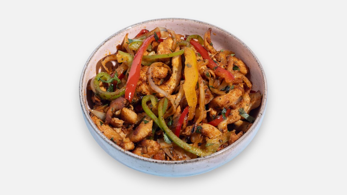 ფახიტასის სტილში გრილზე ახლად შემწვარი ქათმის ხორცი, ყვითელი, წითელი და მწვანე ბულგარული წიწაკა, ხახვი და ნიორი, მექსიკური სანელებლებითა და ჰალაპენიოთი. მიირთმევა არომატულ ბრინჯთან ერთად და მოყვება არაჟნის ბაზაზე მომზადებული მექსიკური სოუსი. 490 გრამი.