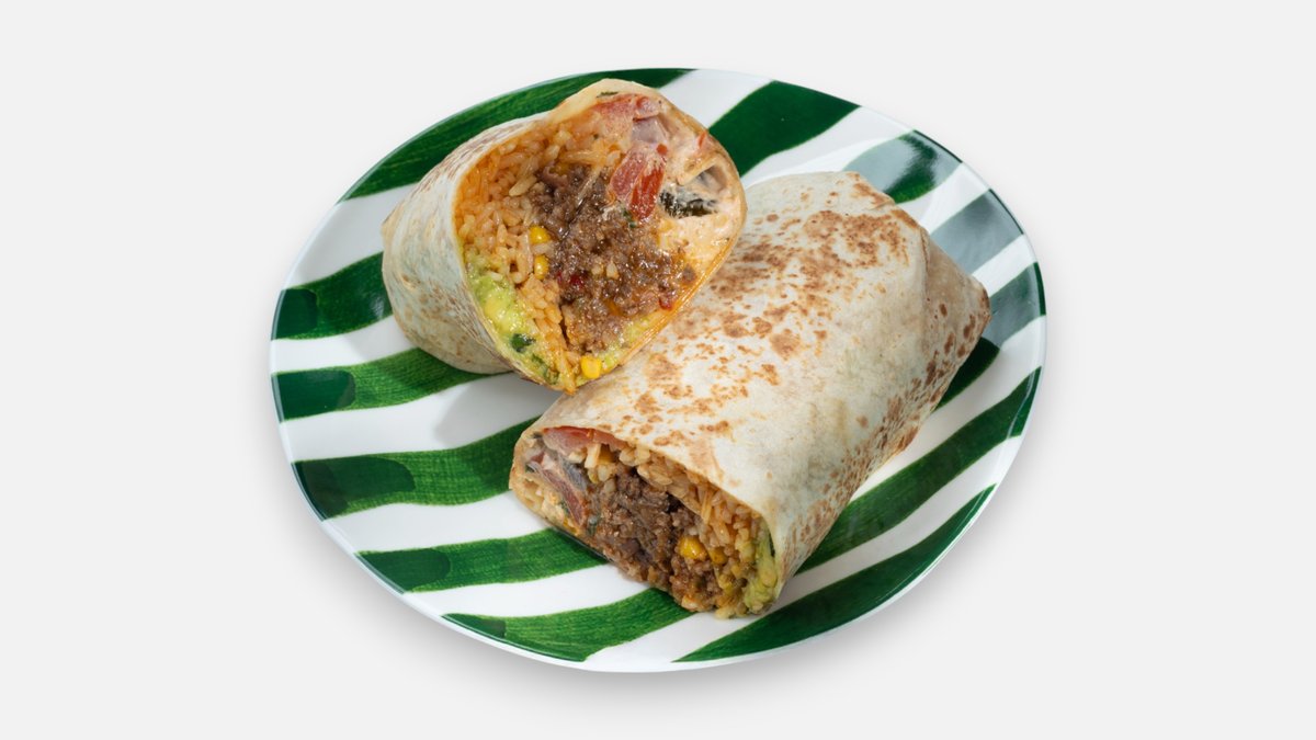 ახლად გამომცხვარ ტორტიაში მოთავსებული ნედლი საქონლის ხორცის ფარში, გვაკამოლე და გაუდას ყველი, ლობიო, ბრინჯი და სიმინდი. დამატებულია მექსიკური სოუსი, პიკო დე გაიო და ჰალაპენიო აუთენტური მექსიკური გემოს მისაღებად. 450 გრამი
