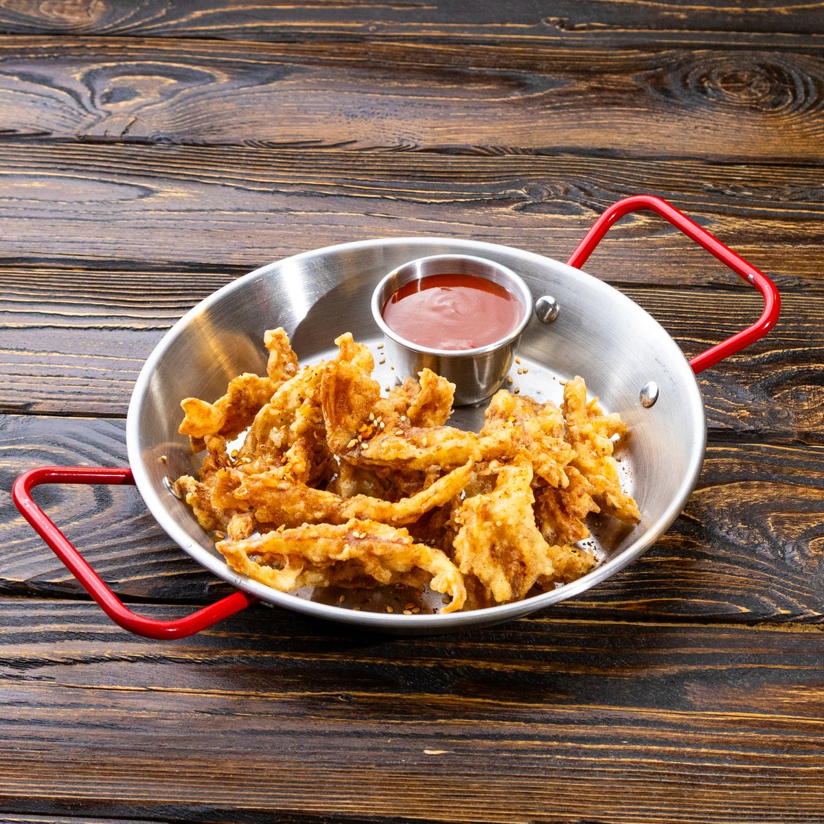 ქათმის ფრთები,სახამებელი,ნიორი,კორეული ცხარე სოუსი,კეტჩუპი