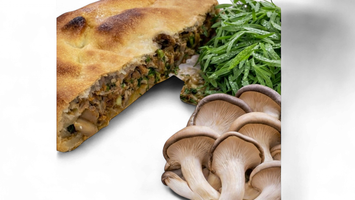ხის სოკო(კალმახა), ტარხუნა,პომიდორი ,ცომი