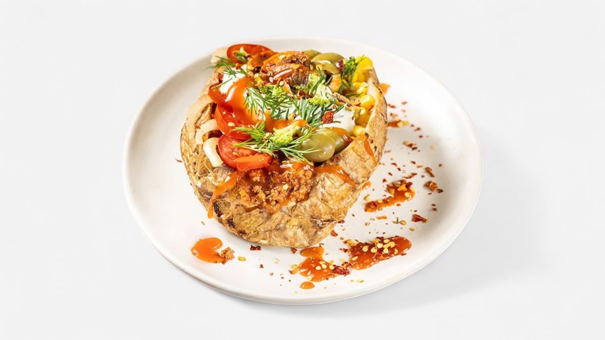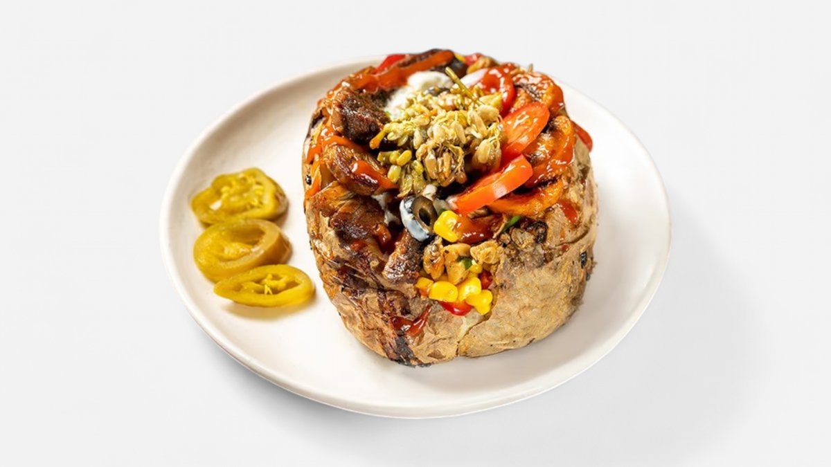 კარტოფილი კარაქით, ხბოს ხორცი, ჰალაპენიო, ტკბილი სიმინდი,მწვანე ხახვი, ჟონჯოლი, პომიდორი ჩერი, ზეთისხილი, პომიდვრის სოუსი.