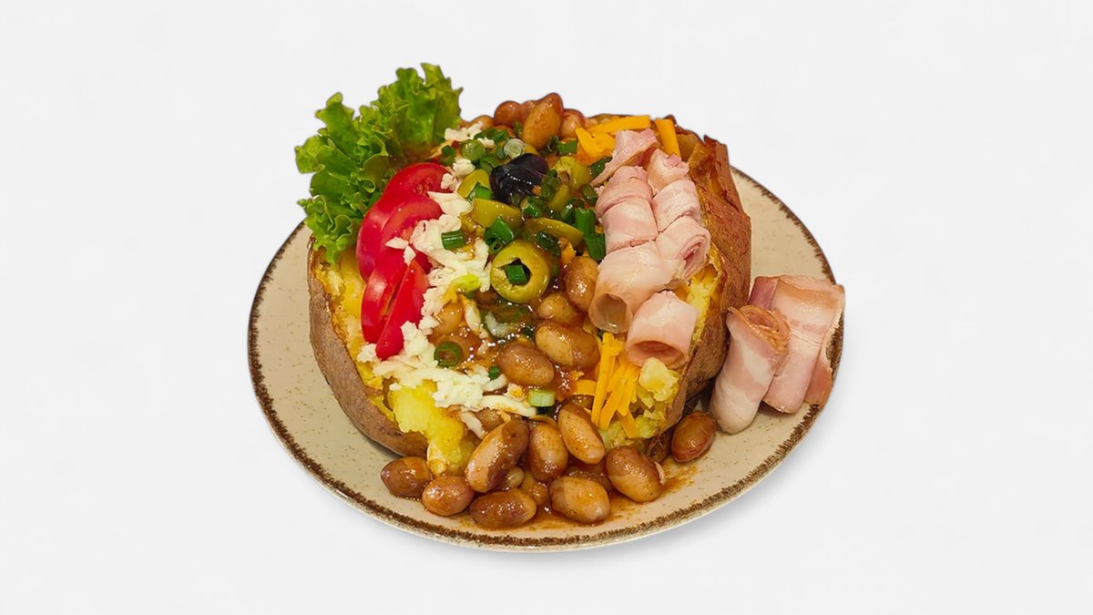 დიდი პოტატო ბეკონით და ლობიოთი