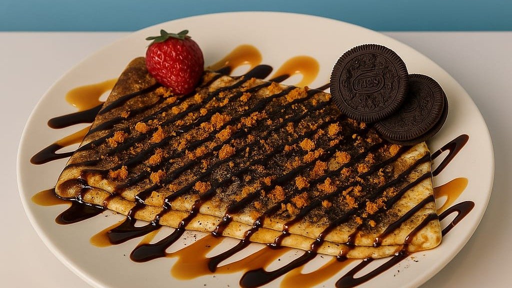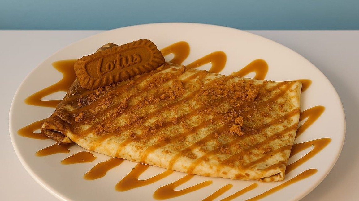 A warm, buttery crepe filled with smooth, creamy Lotus Biscoff spread for a rich caramelized flavor