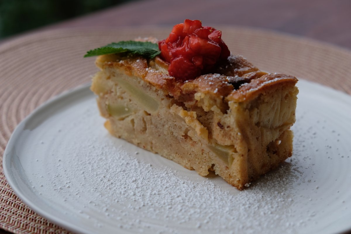 ვაშლის ღვეზელი მწვანე ვაშლებით, დარიჩინით, ვანილითა და მუსკატის კაკლით.