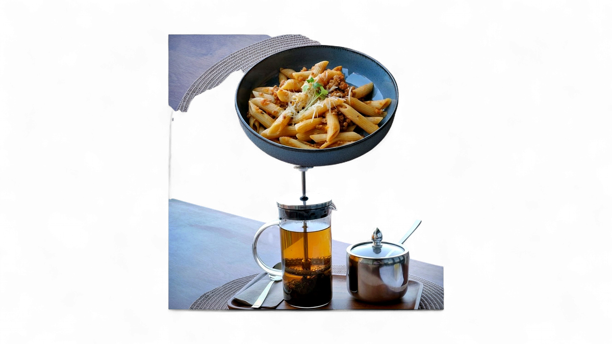პასტა ბოლონიეზე და ჩაი