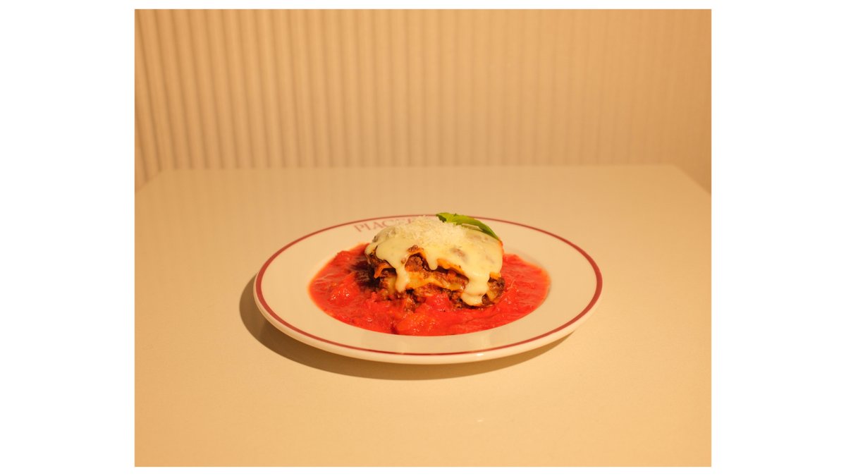Beef, mozzarella, béchamel, tomato sauce, and parmesan