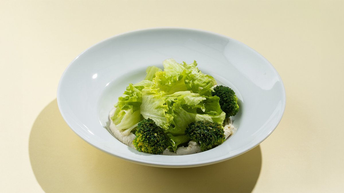 Cream cheese, tahini, mixed greens, broccoli with dressing