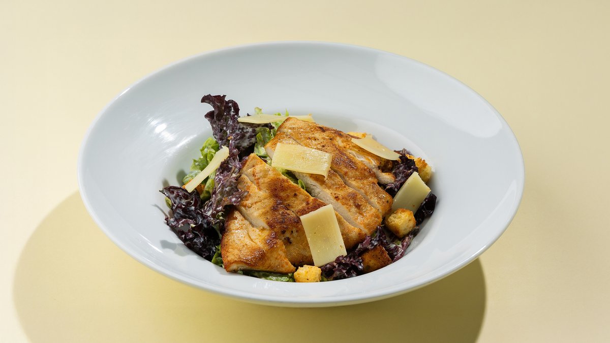 Grilled chicken, Salad mix, Caesar sauce, Parmesan & Croutons