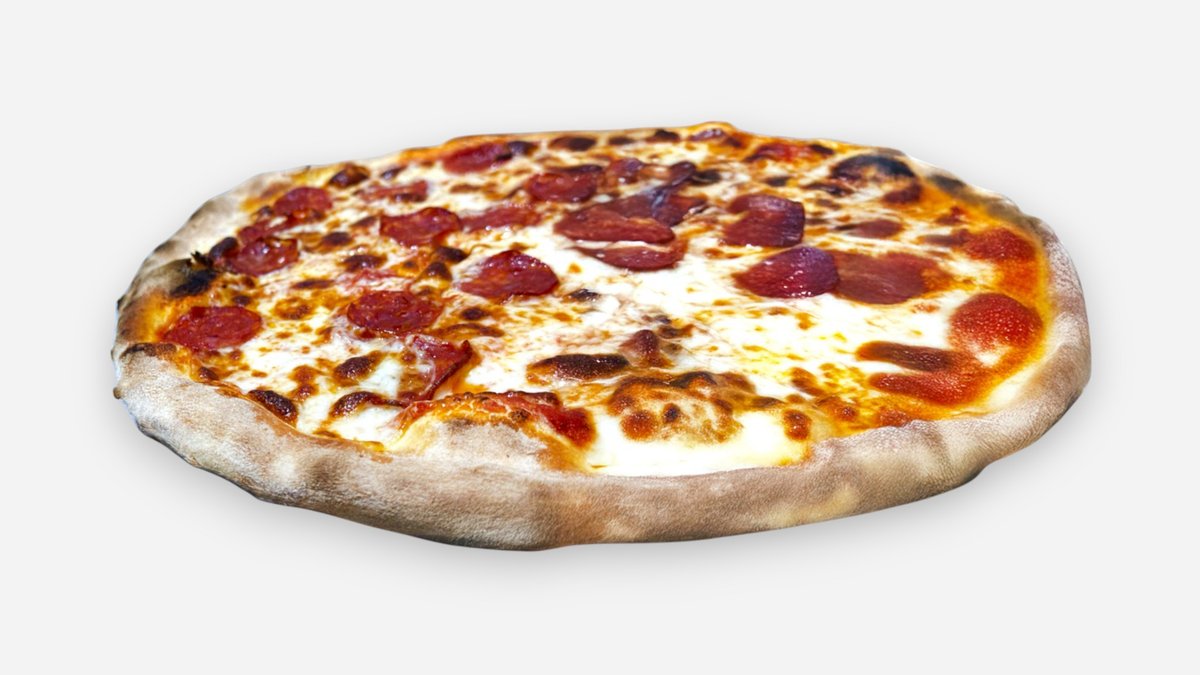 ტომატის სოუსი, მოცარელა, ბეკონი, პეპერონი, ჰალაპენიო