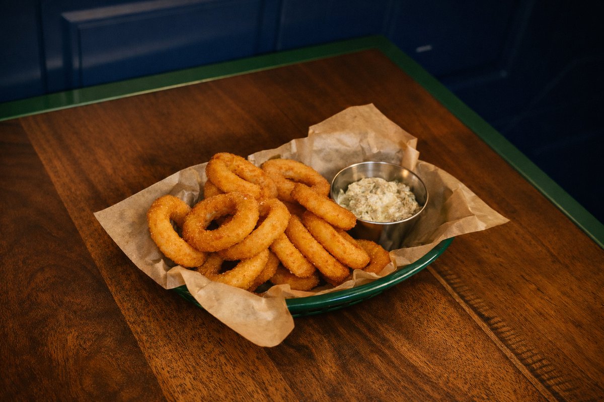 ფრიტურში შემწვარი ხახვის რგოლები ტარტარის სოუსით